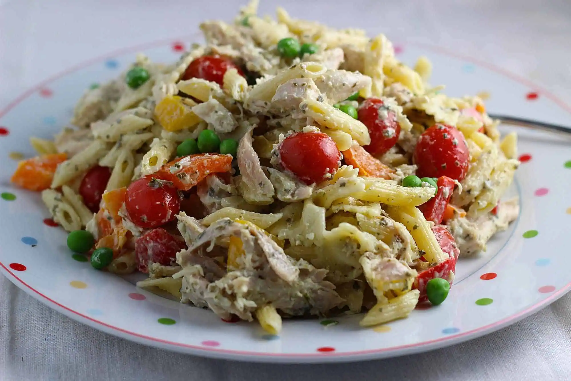 - В подходящей емкости смешайте макароны, курицу и соус песто.