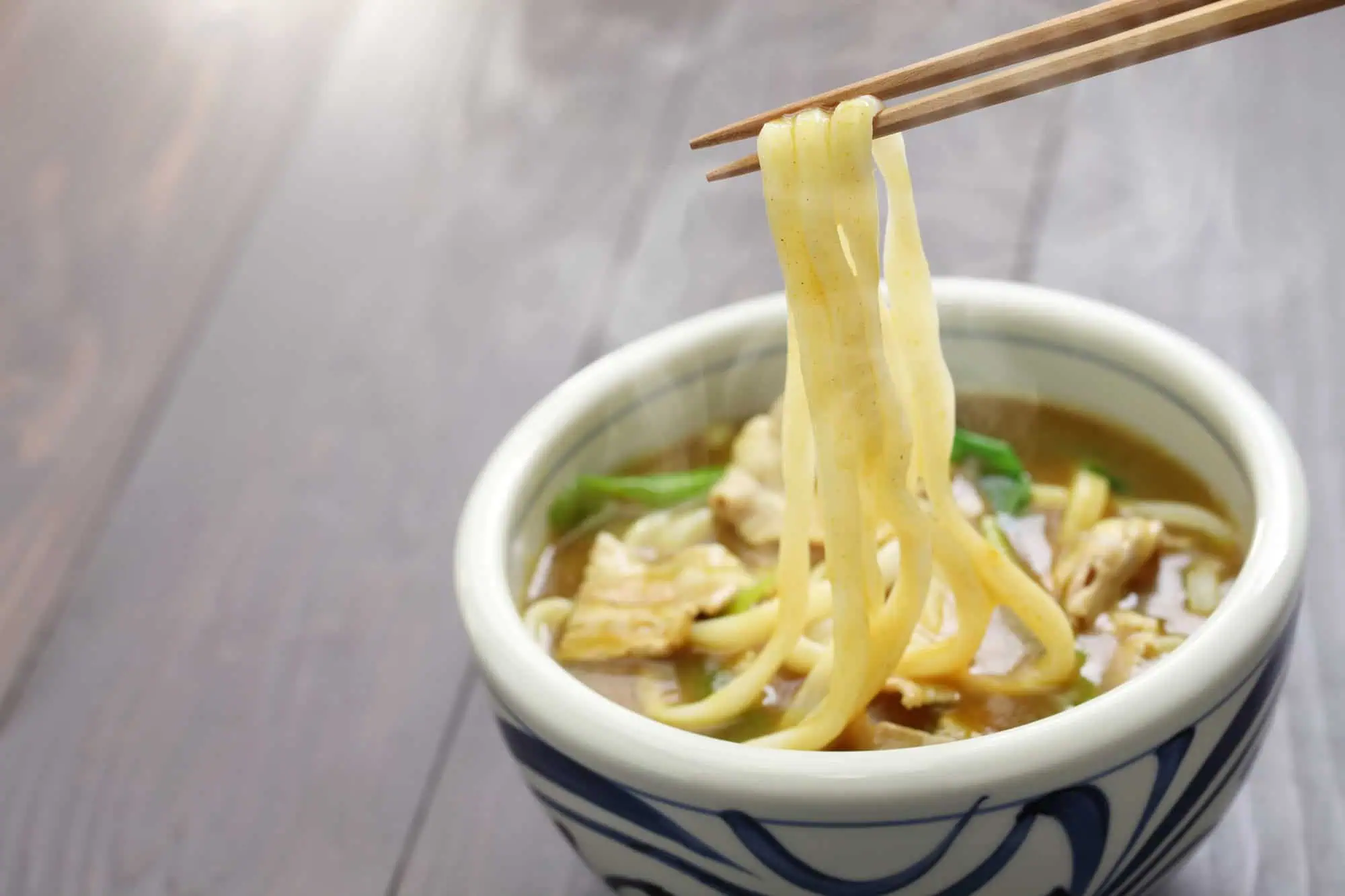 Лапша удон изготавливается из комбинации пшеницы (обычной белой муки) и соли. Вот и все! Никаких яиц или риса. Иногда при нарезке лапши используется немного кукурузной муки, чтобы она не слипалась.
